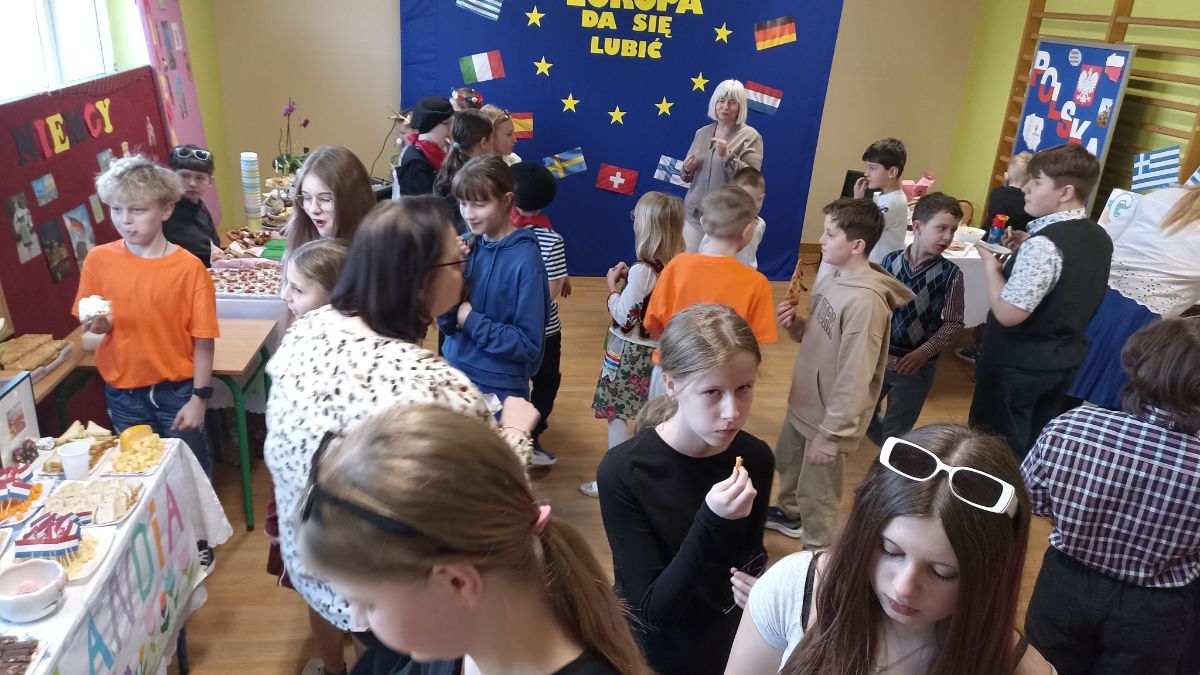Na początek tej wspaniałej przygody uczniowie przygotowali interesujące prezentacje, w których przedstawili ciekawostki o danym kraju, przybliżyli kulturę, sztukę, zabytki oraz sławne osobistości i smaczną kuchnię. Kiedy już zaostrzył nam się apetyt, odbyła się degustacja wszystkich smakołyków z każdego zakątka Europy. Jakie tam były rarytasy🥮🥘🥪🍕🍓! Gdy już wszystko zjedliśmy, każda klasa zaprezentowała taniec lub piosenkę pochodzącą z danego kraju💃🕺 Bawiliśmy się wyśmienicie oglądając wspaniałe występy naszych koleżanek i kolegów.