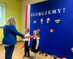 Dziś w naszej szkole odbyło się długo wyczekiwane przez uczniów ślubowanie. Dzieci z klasy 1 stały się pełnoprawnymi uczniami naszej szkoły. Nie było to jednak takie łatwe bowiem czekało ich kilka trudnych zadań do wykonania ! Byli jednak świetnie przygotowani i bez trudu wszystkie je wykonali zaskakując zgromadzonych swoją wiedzą i umiejętnościami. Po części artystycznej nadszedł czas Pasowania. Pani Dyrektor przykładając na ramię każdego pierwszoklasisty kredkę, mianowała Go uczniem. Tak się składa, że w tym dniu obchodziliśmy również Dzień Nauczyciela. Nasi uczniowie o tym doskonale pamiętali i zaskoczyli Nas uściskami, kwiatami i milionem miłych słów.